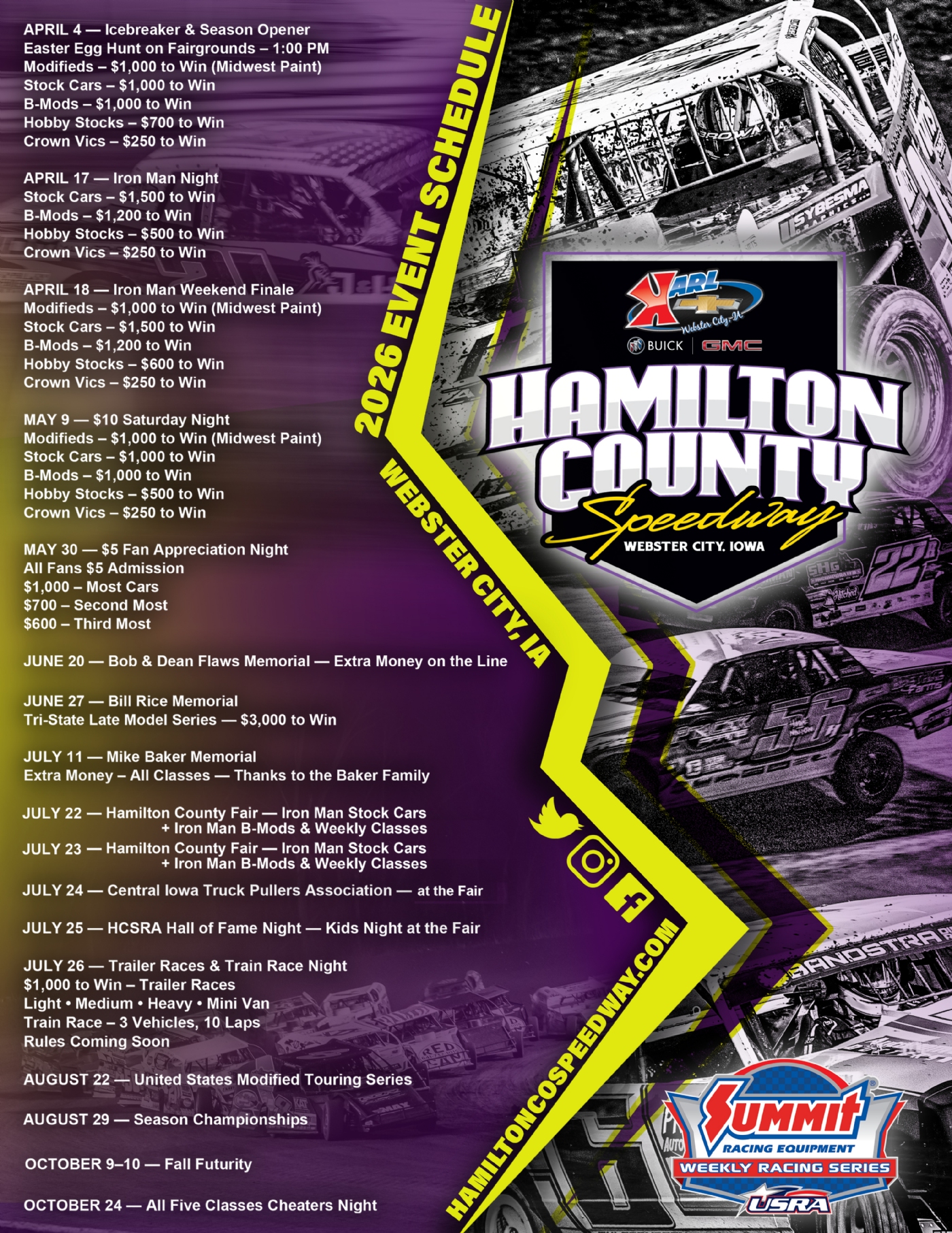 Huge agenda for Hamilton County Fair fansNext up for the Karl Chevrolet Hamilton County Speedway will wall-to-wall action on the historic half-mile oval in Webster City, Iowa, during the annual Hamilton County Fair, Thursday-Sunday, July 24-27.